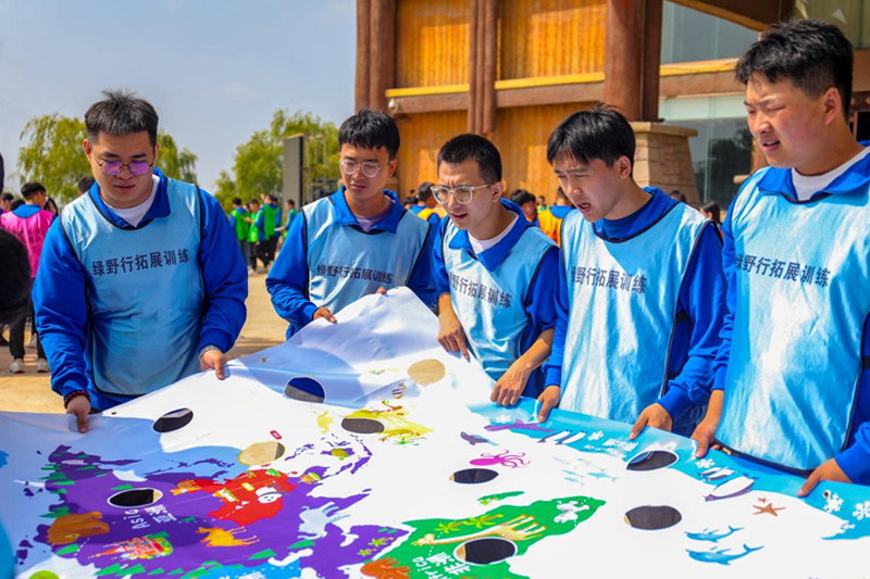 16日全天为拓展训练。早晨的跑操让大家保持着身体的活跃和敏捷,以良好的状态投入到一天的拓展训练中;摞高塔游戏能够帮助团队成员们更好的理解团队合作的重要性,通过绳子合力将木块摞得高而稳固,很好的锻炼了团队成员的互动协作能力,也显现了有效沟通的魅力;小球“环游世界”中每个人都需要找到自己的位置,密切观察其他队员的变化,及时调整球的方向和力度,锻炼了团队共同面对挑战的应急能力;在搭建船帆的过程中,大家根据图纸进行不断地尝试和调整,直到达到最理想的效果。伴随着现场人员的呐喊声和鼓掌声,标有“九游网页版登录入口,扬帆起航”的巨幅彩帆缓缓升起,人们看着自己的劳动成果激动得欢呼跳跃,将整个拓展训练氛围推向了高潮。